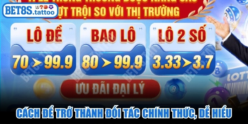 Để trở thành một đại lý BET8S chính thức, bạn chỉ cần truy cập vào trang chủ, điền thông tin vào mẫu đăng ký đối tác và chờ nhân viên liên hệ xác nhận. Ngay sau khi tài khoản được kích hoạt, bạn có thể lấy link giới thiệu và bắt đầu hành trình khởi nghiệp của mình. Đừng ngần ngại liên hệ đội ngũ hỗ trợ 24/7 nếu gặp bất kỳ khó khăn nào trong những bước đầu tiên.